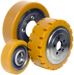Polyurethane tires and load wheels are built for electric forklifts working inside. Lightweight but tough, these tires handle heavy loads while resisting damage from regular wear. They also reduce rolling resistance, helping electric forklifts last longer between charges. Load wheels are often used on pallet jacks and deliver dependable use with little need for upkeep.